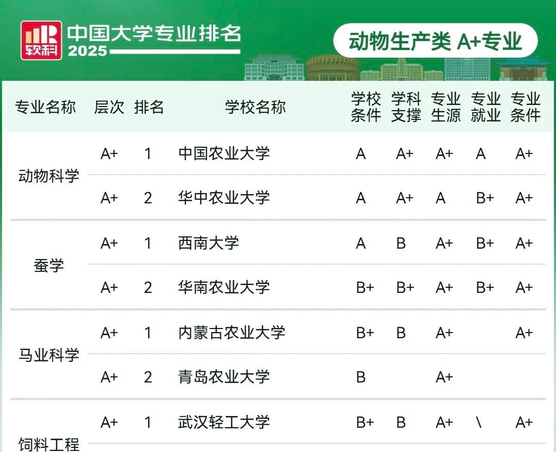 近日, 2025软科中国大学排名发布,动科学院饲料工程专业连续获评A+专业!