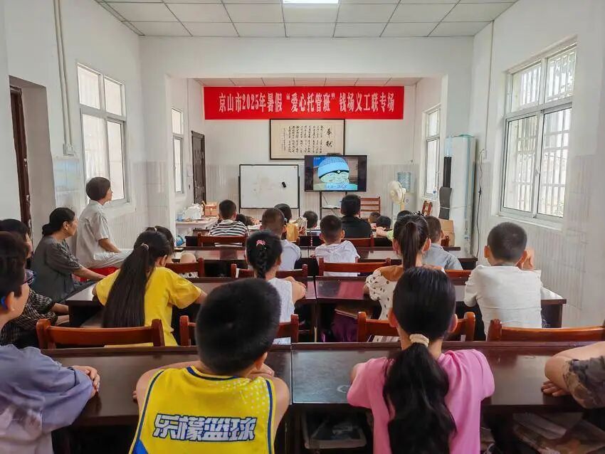京山市历史教师郝如意与我院“星希望”志愿服务队志愿者动物科学2302班刘烁雯和动物科学2404班康曼妮在京山市钱场镇义工联暑假“爱心托管班”联手开展了一堂意义非凡的国学经典课。