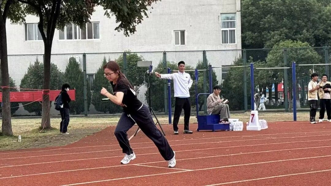 铅球区,选手们转身蓄力,手臂猛地推出,铅球划出有力弧线,“咚”的一声落向远方。