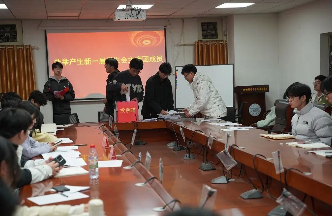 在总监票人的监督下,全体代表遵循“公平、公正、公开”的原则,以无记名投票的方式,选举产生了动科学院新一届学生会主席团成员和出席武汉轻工大学第七次学生代表大会的代表。