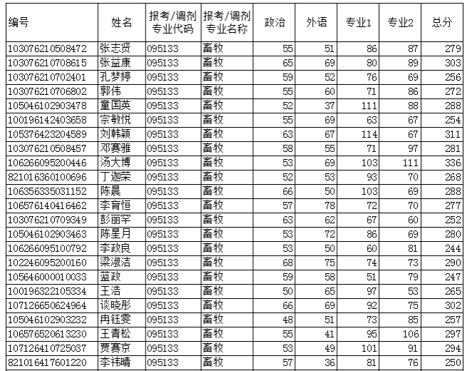 2026年畜牧专硕复试调剂名单公示
