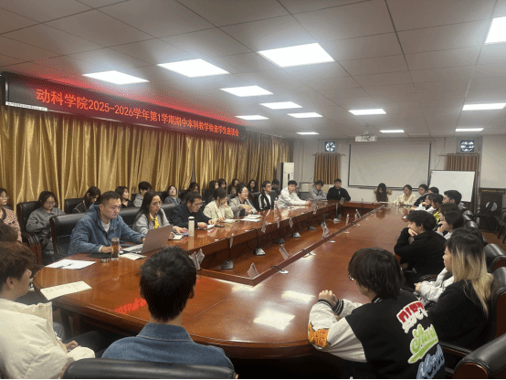 为夯实本科教学质量、提升教育教学效果,及时发现并解决教学过程中存在的问题,11月6日下午,动科学院在笃学楼401会议室召开了2025-2026-1学期期中教学检查学生座谈会。本次座谈会由院长助理郭双双主持,各教研室主任、教学秘书及37名学生代表参加。